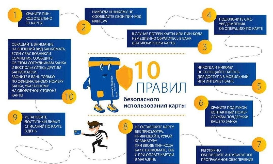 – хранить пин-код отдельно от карты, ни в коем случае не писать пин-код на самой банковской карте;
