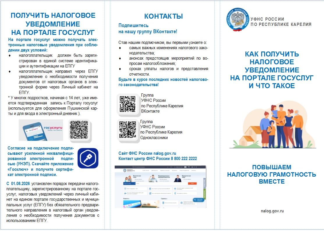 Управление Федеральной налоговой службы по Республике Карелия в рамках проведения мероприятий по повышению налоговой грамотности населения Республики Карелия предоставило информационный буклет.